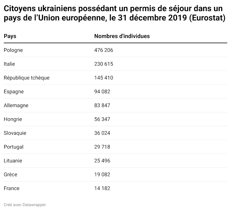 Dans les années 2000, ce sont la République tchèque (110 000 Ukrainiens en 2019), l’Italie (250 000), l’Espagne (94 000) et le Portugal (47 000), portés par une forte croissance économique, qui ont été les principaux pays d’accueil. Au cours de la décennie suivante, c’est la Pologne qui s’est imposée comme destination majeure, grâce à des dispositifs facilitants.