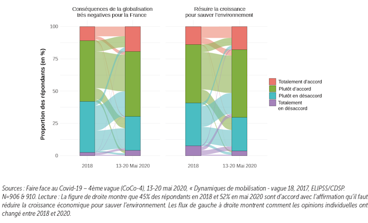 Néanmoins, le soutien à des politiques redistributives évolue plus modestement (de 51 à 57 %), à contrario des réticences vis-à-vis de la globalisation qui ont considérablement augmenté (de 58 à 70 %).