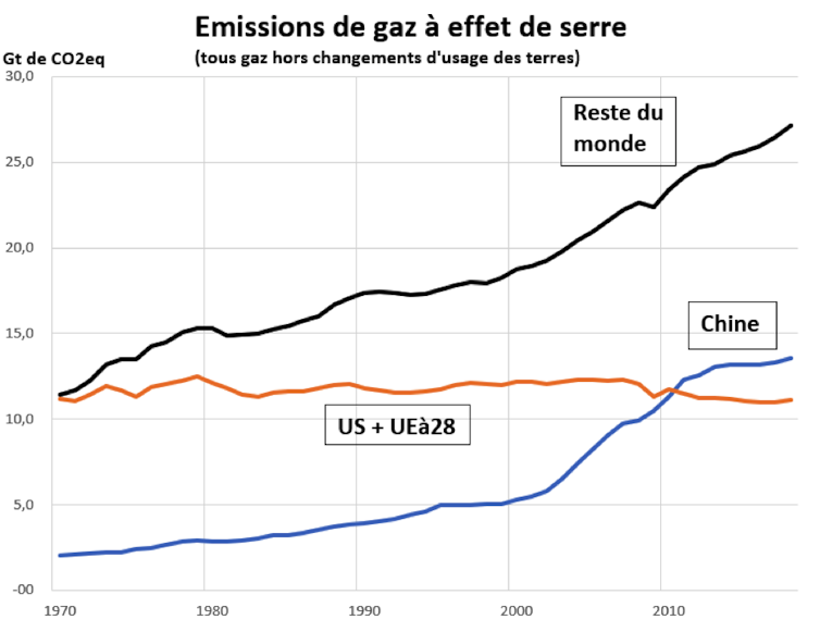 Si clarifier la position de la Chine peut constituer un effet conséquent du sommet, ses capacités d’entraînement les plus importantes concernent cependant le « Reste du monde » devenu, devant la Chine, le plus gros contributeur à l’accroissement des émissions mondiales (graphique).