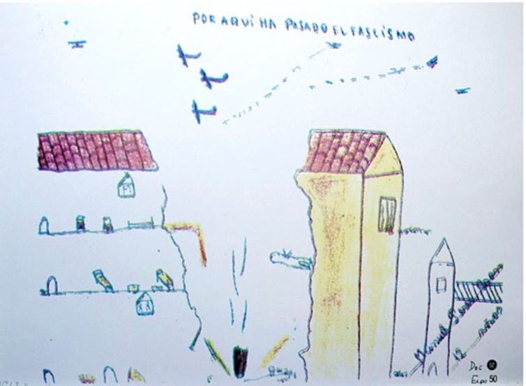 Leur vie durant, Alfred et Françoise Brauner ont collecté les « dessins-témoignages » d’enfants en guerre. Dès 1937, ils rejoignent les Brigades Internationales en Espagne, elle d’abord, comme médecin ; lui ensuite, avec la charge d’inspecter les centres pour enfants évacués de la côte levantine. C’est dans ces foyers que les Brauner commencent à s’intéresser au dessin comme outil thérapeutique, mais aussi politique, servant à dénoncer les horreurs de la guerre et, plus encore, à aiguiller la solidarité internationale envers la République espagnole.