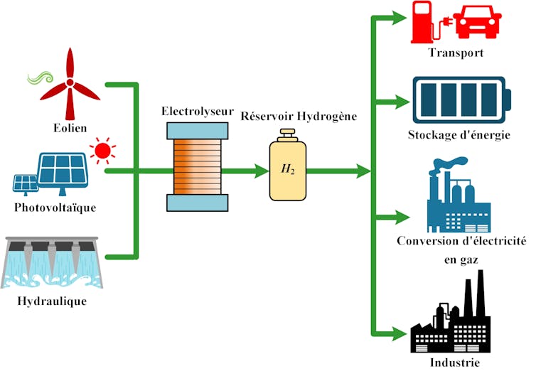 Parmi elles, le stockage de l’électricité en hydrogène permet de contribuer à la décarbonation de certains secteurs responsables du réchauffement climatique comme le transport aérien, maritime, et terrestre.