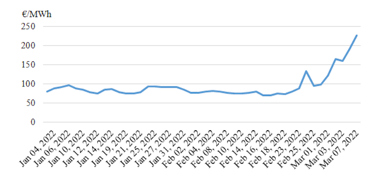 Les centrales électriques au gaz disposent à la fois d’une flexibilité permettant de limiter ce problème d’intermittence tout en utilisant une source d’énergie moins polluante que le charbon, moins controversée que le nucléaire et moins coûteuse que le pétrole. Paradoxalement, la stratégie énergétique européenne a favorisé le développement des centrales électriques alimentées au gaz et donc la dépendance au gaz russe.