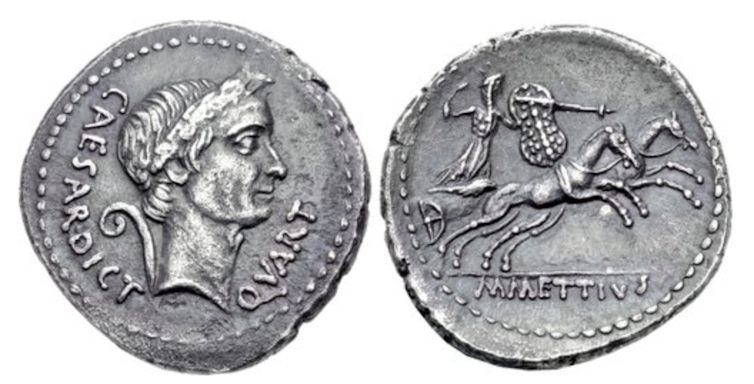 Monnaie à l’effigie de Jules César « dictateur pour la 4e fois, janvier 44 av. J.-C.