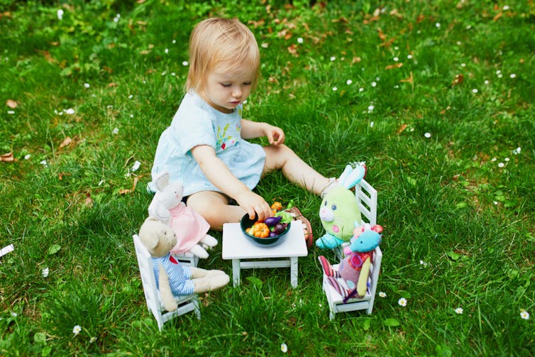 Le jeu de simulation, dans lequel des objets sont transformés pour en représenter d’autres (un balai représente un cheval, un doigt fait office de pistolet…), apparaît vers l’âge de 1 an et constitue un moyen de développer la pensée abstraite, ce qui a des implications pour les futures compétences cognitives, sociales et académiques.