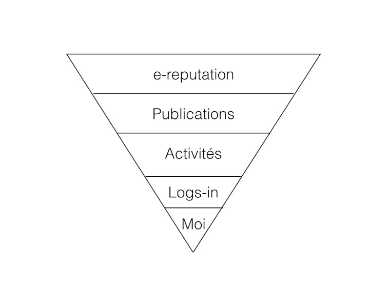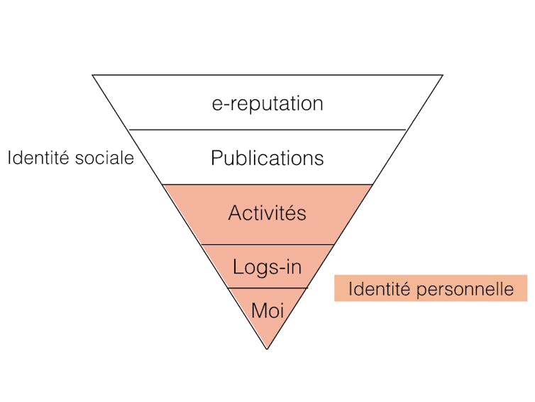 L’identité numérique se compose de 5 strates : e-réputation, publications, activités, logs- in, et Moi.