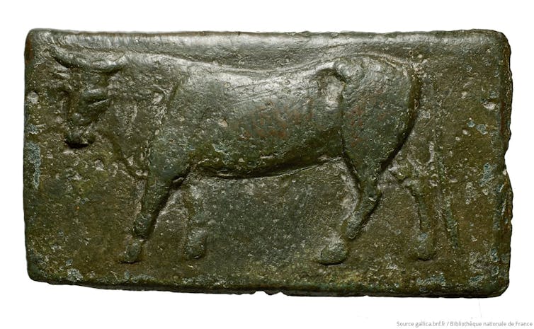 Cette monnaie de bronze, datée vers 280-250 avant J.-C., est une des plus anciennes du monde romain. gallica.bnf.fr/BnF, CC BY-NC-ND