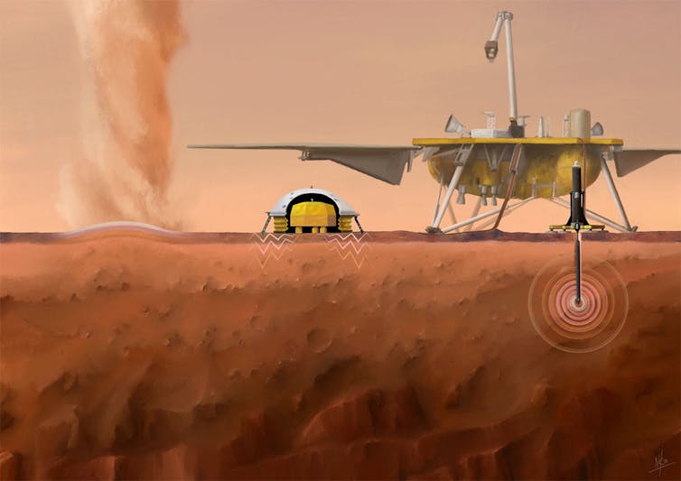 La première tentative pour percer les mystères de l’intérieur de la planète rouge par le biais de la sismologie avait eu lieu dès 1976, avec les atterrisseurs américains Viking, les premiers à parvenir intacts à la surface de Mars. Si cette mission a été l’un des plus grands succès de la conquête spatiale, les sismologues étaient restés sur leur faim : le sismomètre de l’atterrisseur Viking 1 ne put être mis en service, et entre 1976 et 1978, celui de Viking 2 n’enregistra que les secousses provoquées par les assauts répétés du vent sur la structure de la sonde.