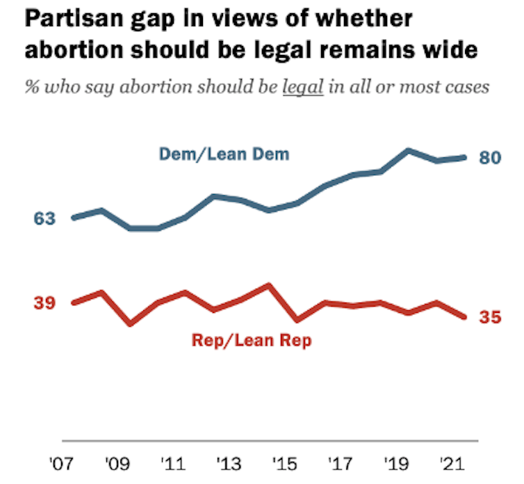 Non seulement le sujet du droit à l’avortement aux États-Unis est éminemment politique, mais la confirmation des juges les plus conservateurs s’est faite essentiellement autour de cette question sur des lignes partisanes. Elle est le fruit d’une stratégie au long cours des Républicains, qui n’ont pas hésité à mettre à mal les normes démocratiques du fonctionnement des institutions dans le but de politiser tout l’appareil judiciaire.