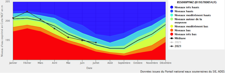 Le suivi du puits de Villers-en-Haye (Meurthe-et-Moselle) est un bon exemple pour illustrer ce qui s’est passé courant 2021 sur la plupart des nappes françaises.
