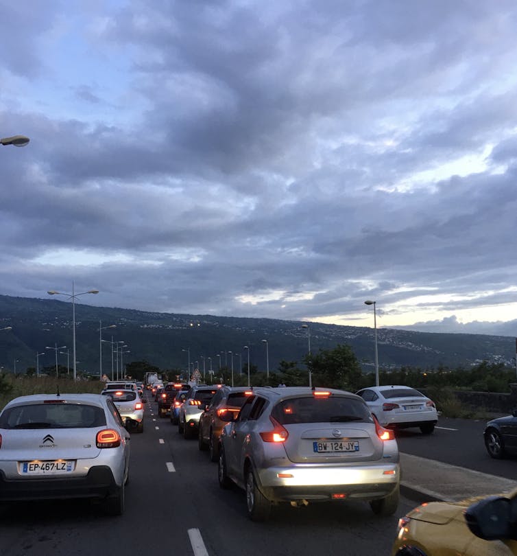 A la Réunion, nombreux sont ceux qui prennent la voiture pour travailler et parcourent jusqu’à 80 km tous les jours, créant d’énormes embouteillages aux heures de pointe ; les habitants des hauts de l’île devant rejoindre les zones économiques se situant sur le littoral. Ce découpage s’explique par le relief extrêmement accidenté de l’île qui est en fait la partie émergée de deux volcans.